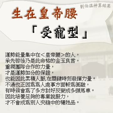 After so many years of turning away from the TV in favor of animes, I am going back to having myself hooked up on the TV programs again... Partially is due to the Odex saga, where anime-lovers had to refrain from watching too much animes... But this Taiwan long-running drama just caught my attention... I love how 劉伯溫 uses his wits to thrash out with the forever never dying bad guys... It sort of became a routine for me to get home by 8pm and sit through the entire 1.5hrs of show... Thus, I normally get irritated and upset when the project discussions eat into my precious TV time... And when I am so into this show, I actually find some time to play around its official site... Below is a test result which I would like share... I would not comment on how true the result speaks... Its up to my friends to judge for themselves... Feel free to join in the fun!!